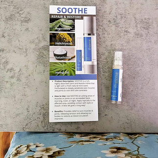 SOOTHE Muscle & Joint Creme. I love how it relieves my low back pain so quickly. It feels light, non greasy and has a mint scent. It also contains some wonderful natural ingredients including organic aloe, full-spectrum hemp and other natural remedies.