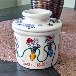🐝 The Christmas Honey Bee Butter Bell Crock theme is being introduced specifically for holiday gift giving! I love the whimsical santa hat wearing honey bees and festive christmas lights. It makes a wonderful gift for butter lovers, bee enthusiasts and everyone else who doesn't like to wait for butter to soften!