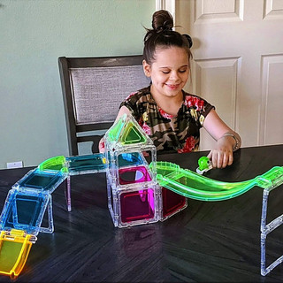Her warmup set came with 3D panels that easily pop in and out of the magnetic frames so she can build, play, re-design and repeat! The paperboad panels are great for adding your own personal touch to draw your own scenery. I like how #Squaregles allows kids to experience trial and error, learn #causeandeffect, analyze outcomes and make predictions. To learn more and see all the different sets visit